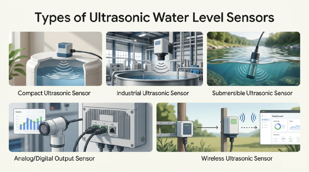 • Sensor Ultrasonik Nirkabel (Wireless) – Memungkinkan pemantauan jarak jauh tanpa banyak kabel, ideal untuk sistem yang tersebar.