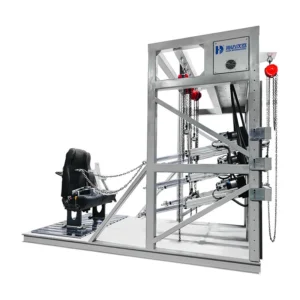 Peralatan ini bertujuan untuk mengevaluasi proses produksi kursi serta produk jadi yang telah dirakit dengan menguji kekuatan setiap sambungan las, seluruh koneksi, dan mekanisme penguncian saat dikenai gaya dan arah beban tertentu. Dengan demikian, dapat dinilai kekuatan serta deformasi yang terjadi pada rangka kursi dan kursi jadi.