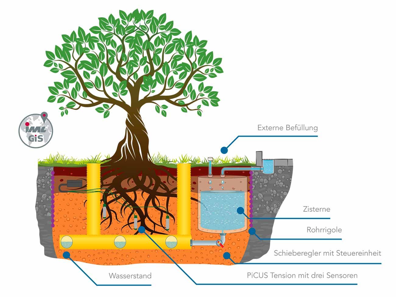 Teknologi pengukuran PiCUS Tension memberikan informasi tentang kadar air tanah dan tegangan air tanah, yaitu ketersediaan air bagi tanaman. Hal ini memungkinkan untuk mengidentifikasi apakah lokasi tanaman tertentu berisiko mengalami stres kekeringan dan berapa banyak air yang dibutuhkan untuk mengatasinya. PiCUS Tension AW mengotomatiskan reaksi ini terhadap stres kekeringan yang akan datang sehingga kerusakan tanaman tidak terjadi sejak awal.