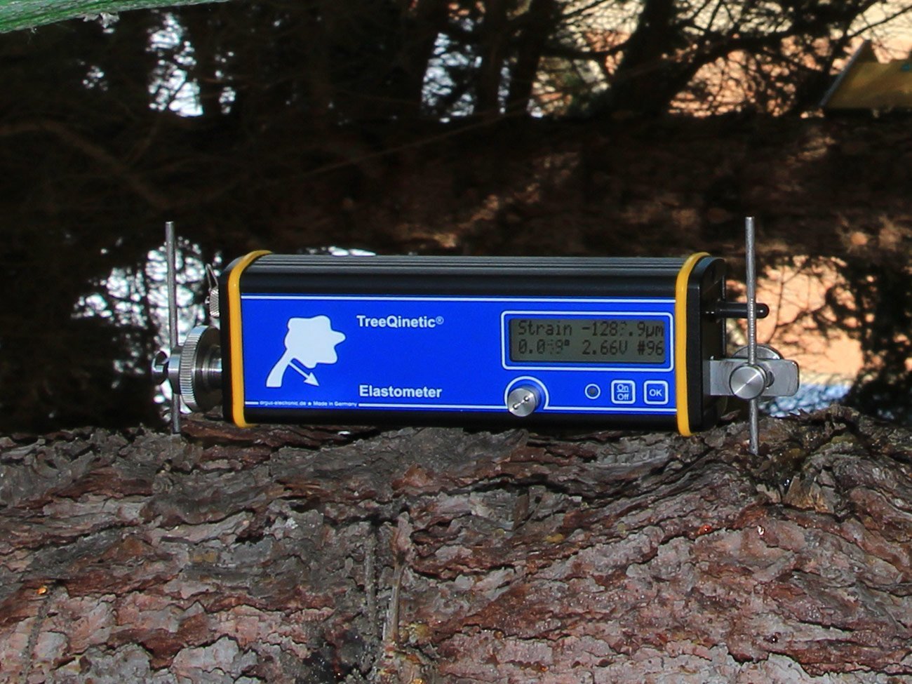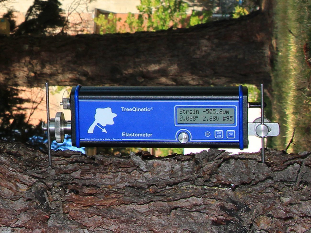 Elastometer mencatat pemanjangan atau kompresi serat kayu luar batang pohon. Nilai yang terukur berfungsi sebagai dasar untuk memperkirakan ketahanan patah.