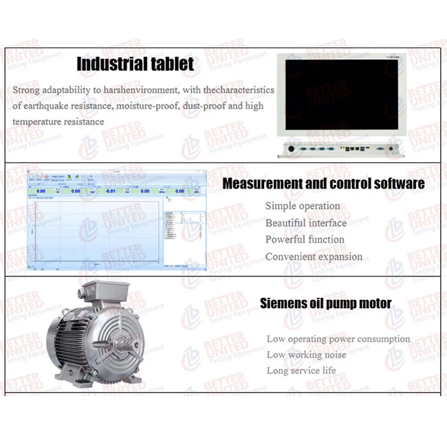 - Konfigurasi yang beragam dan kokoh untuk opsi ujung pengujian, opsi grafik, nilai PID, kecepatan pergerakan crosshead, dan lainnya