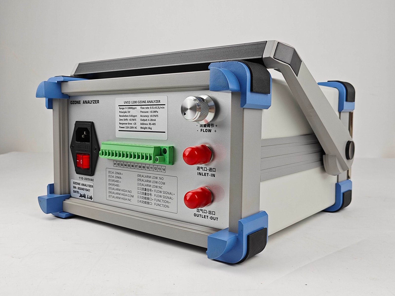 - Tampilan data: layar sentuh warna HD, pengaturan rentang konsentrasi tinggi untuk laju aliran massa gas masuk, tampilan hasil secara real-time.