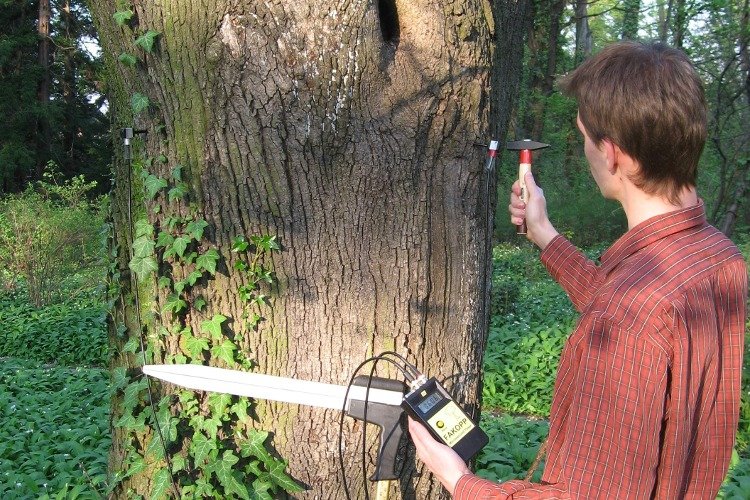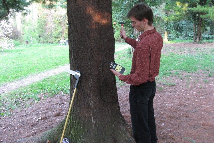- Transduser identik. Pilih transduser yang terhubung ke konektor “Start”. Tanda warna membantu Anda mengidentifikasi transduser start. Pukul sensor start dengan menggunakan palu. Pukulan harus selalu sejajar dengan arah paku. Gunakan palu karet untuk memukul sensor. Untuk pengukuran, gunakan palu baja 100 g. Biarkan palu kembali ke posisi semula. Setelah digunakan, matikan unit.