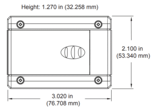Dimensi 3.02″ x 2.1″ x 1.27″ (76.7 x 53.3 x 32.2 mm)