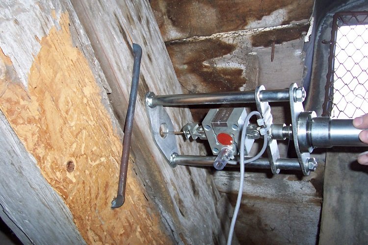 - Mulai proses penarikan sekrup dengan menempatkan mekanik di atas sekrup. Pegang kepala sekrup dengan garpu transduser gaya.