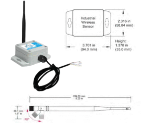 Jenis Antena Nirkabel | 1/4-wave, kawat cambuk 20 gauge, 3,5″ (900/868MHz), 7″ (433MHz) |