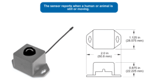 Sensor Deteksi Gerakan Nirkabel mendeteksi gerakan dan pergerakan serta melaporkan berdasarkan interval waktu yang dapat dikonfigurasi pengguna atau Heartbeat. Menggunakan elemen sensor gerakan inframerah pasif (PIR), sensor mendeteksi perubahan relatif dalam suhu yang disebabkan oleh benda-benda hangat yang bergerak melalui area pandang. Setelah sensor mendeteksi gerakan, sensor berkomunikasi ke gateway. Gateway akan segera mencoba mengirim pesan secara aman ke iMonnit atau layanan data yang disetujui lainnya.