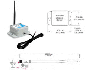 | Jenis Antena Nirkabel | 1/2-wave dipole tahan air dengan konektor RP-SMA dan leher putar; dBi 3,0 (900/868MHz) atau 2,5 (433 MHz); panjang 8,27″ (210mm) (900/868MHz) atau 7,68″ (195mm) (433 MHz); diameter pada titik paling tebal 0,55″ (14mm) |