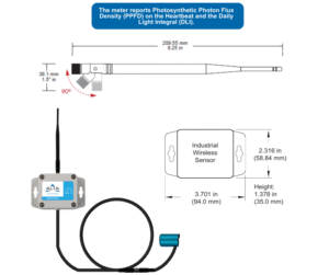 Pengukur Cahaya PAR Nirkabel ALTA menggunakan fotodioda silikon yang ditingkatkan warna biru untuk mengukur panjang gelombang cahaya spesifik yang dibutuhkan tanaman untuk fotosintesis berdasarkan interval waktu yang dapat dikonfigurasi pengguna atau Heartbeat. Pengukur Cahaya PAR mengukur Photosynthetic Photon Flux Density (PPFD) dalam μmol/m²/s. PPFD adalah jumlah cahaya PAR (foton) yang tiba di permukaan tanaman setiap detik. Pengukuran PPFD diintegrasikan sepanjang hari untuk menghasilkan Daily Light Integral (DLI) dalam mol/m²/hari.