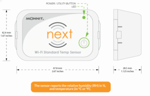 - Pada setiap Heartbeat interval yang dikonfigurasi pengguna, sensor mengukur suhu dan RH → data dikirim ke iMonnit Online melalui jaringan Wi-Fi.