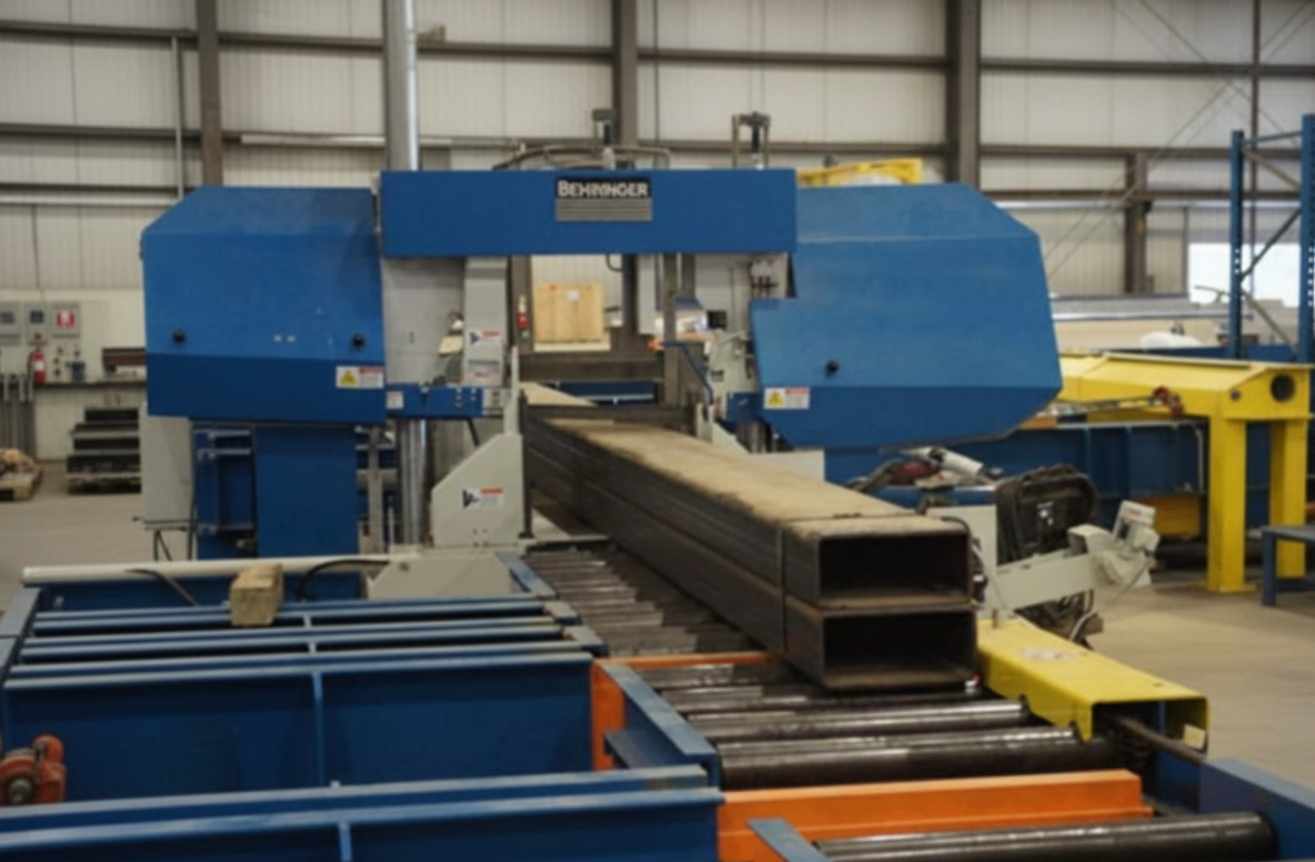 Mengintegrasikan mesin gergaji Behringer skala besar sebagai pusat proses pemotongan batang baja.