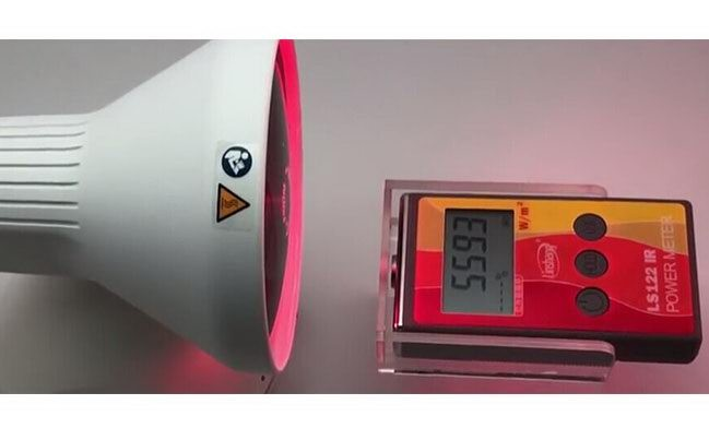1. Nyalakan lampu IR dan pengukur daya IR LS122. Intensitas IR yang dihasilkan adalah 5593 W/㎡ (seperti yang ditunjukkan di bawah).